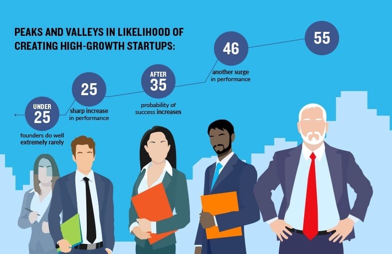 “The mean age at founding for the 1-in-1,000 fastest growing new ventures is 45.0.